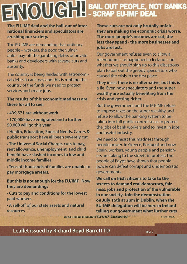 “As EU-IMF come to town…” – Leaflet for march on the 16th of July by The Enough Campaign » imfjuly16b