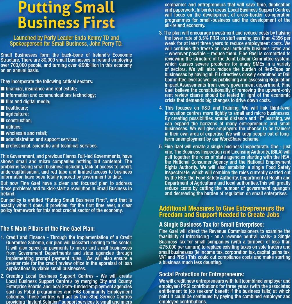 “Putting Small Business First” -Leaflet from Enda Kenny -Fine Gael -Mayo 2011 General Election » endasmallbusiness5