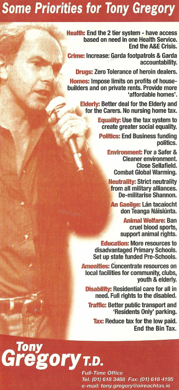 2007 Leaflet from Tony Gregory -Independent -Dublin Central » tgregory07a1