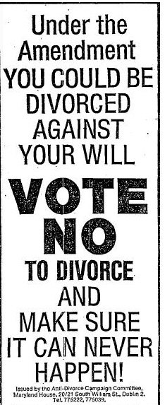 “Under the Amendment YOU COULD BE DIVORCED AGAINST YOUR WILL- Vote No to Divorce 1986 Referendum » no86