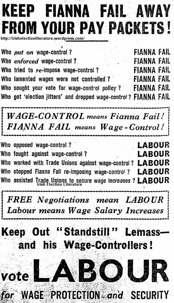 “Wage control means Fianna Fail! , Fianna Fail means Wage Control”