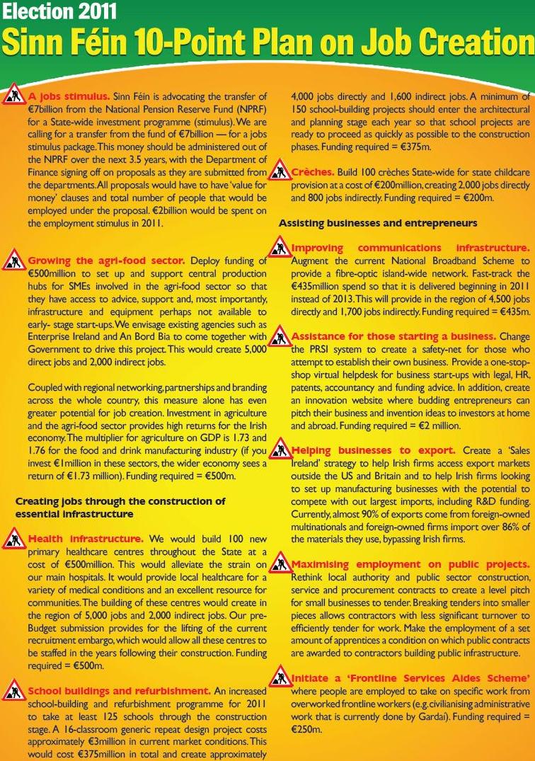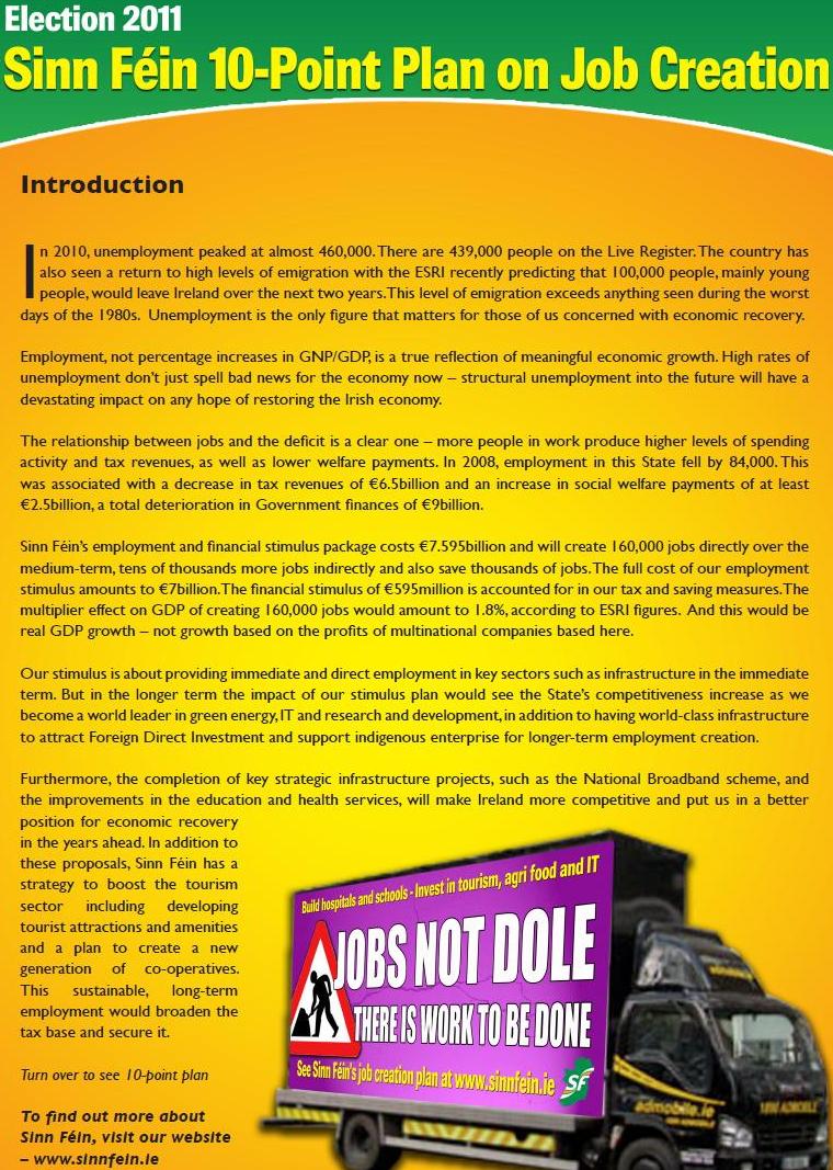 From the 2011 General Election, The “Sinn Fein 10-Point Plan on Job Creation”.