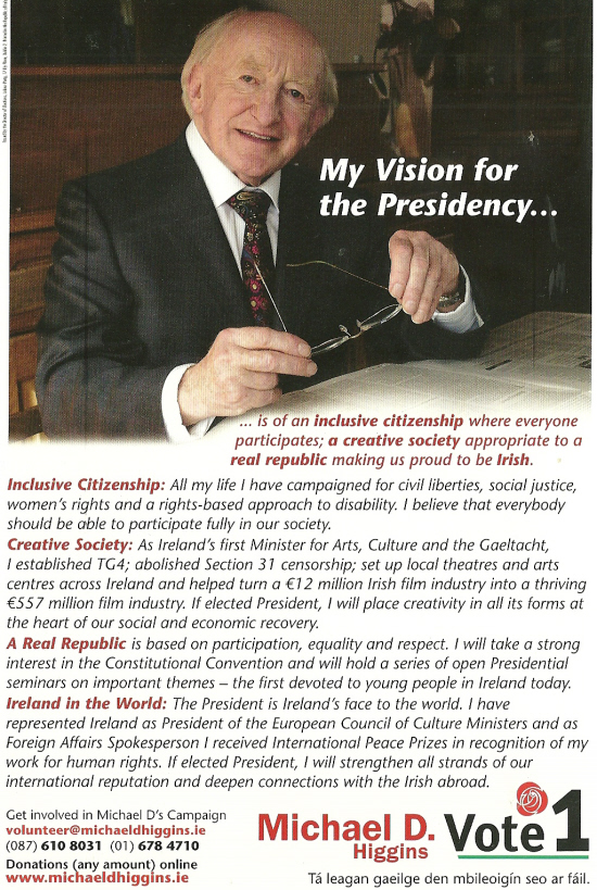 Leaflet from Michael D Higgins – Labour Party -2011 Presidential Election » michaeldback1
