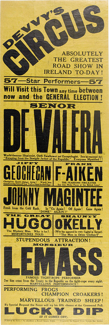 The exhibition shows a series of Cumann na nGaedheal posters and fliers mainly taken from the 1932 general election. The exhibition was covered recently in the Irish Independent