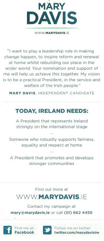 “Seeking A Nomination” leaflet from Mary Davis -2011 Presidential Election » mdavisnomination2