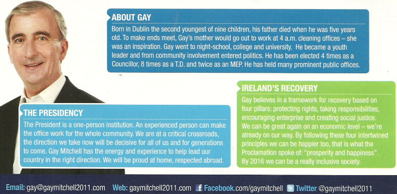 Flyer from Gay Mitchell -Fine Gael- 2011 Presidential Election » gmitchellflyer2