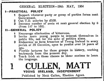 Matt Cullen -Young Ireland -1954 General Election Meath » mcullenyi54