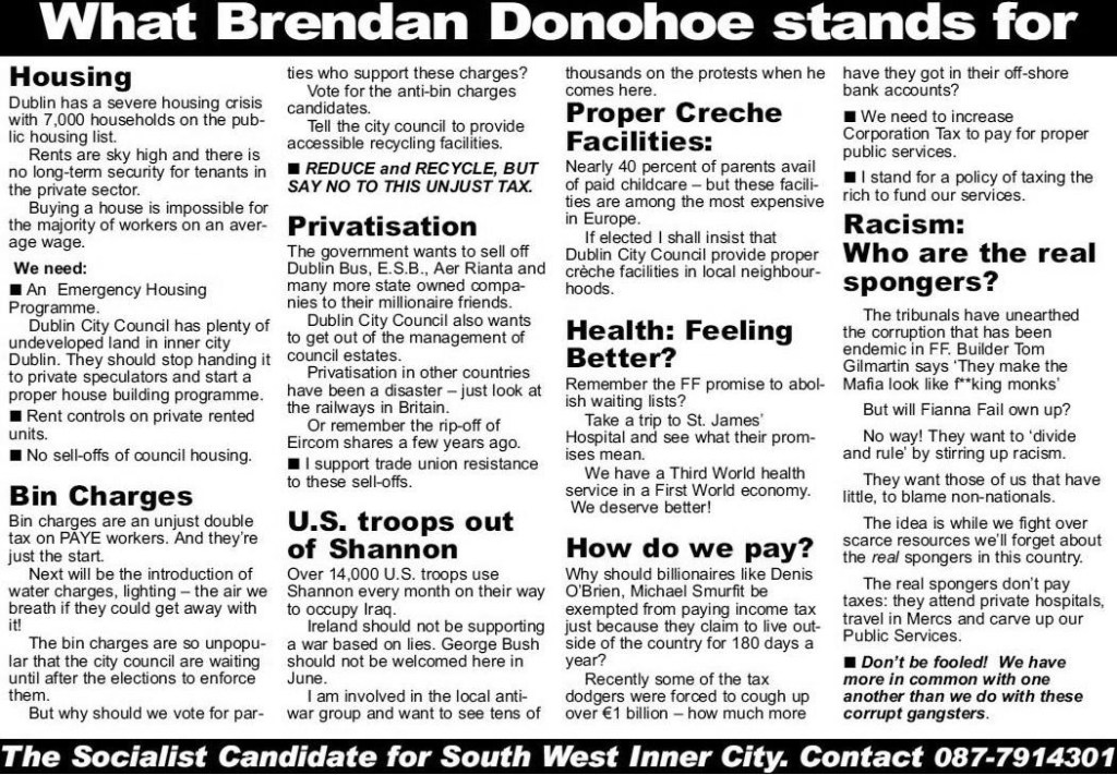 Leaflet from Brendan Donohoe- Socialist Workers Party – 2004 Local Elections -South West Inner City » bdonohoe04b