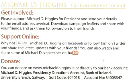 Canvassing Card from Michael D Higgins -Labour -2011 Presidential Election » mdhcard2