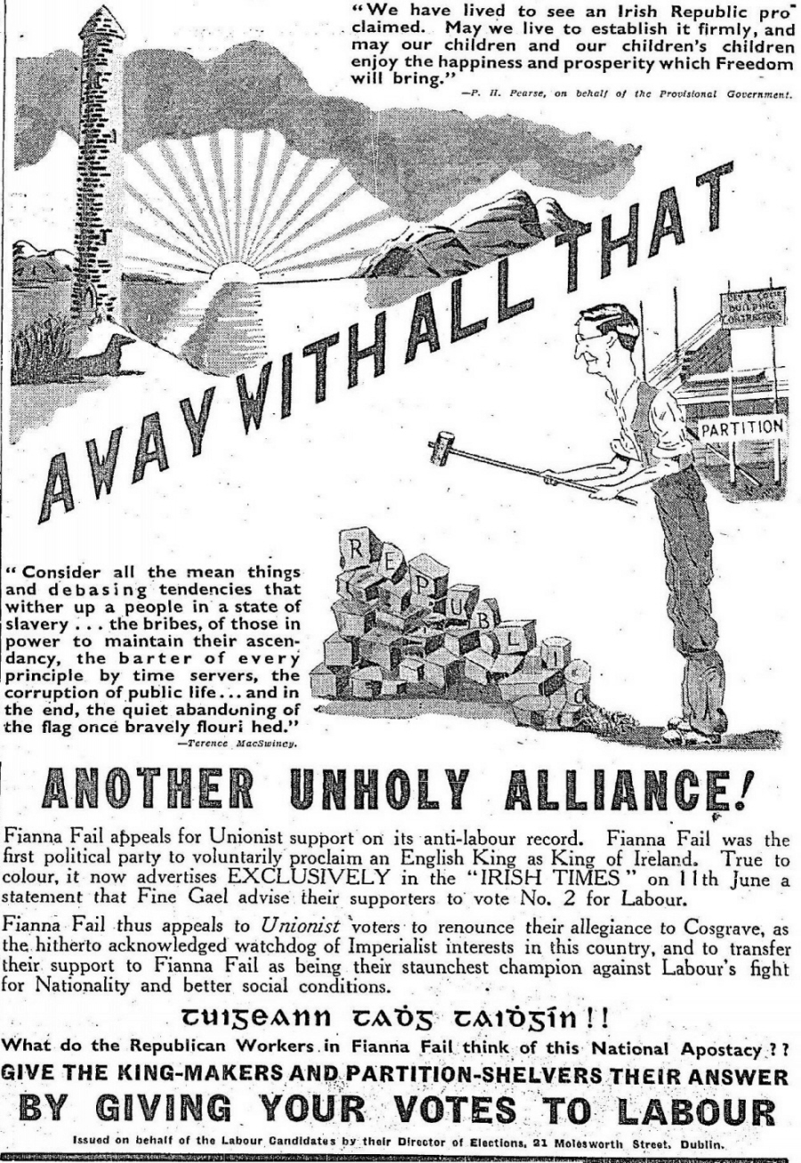 Wonderful 1938 Election Labour Party leaflet concerning Fianna Fails appeals for Unionist support October 9, 2011