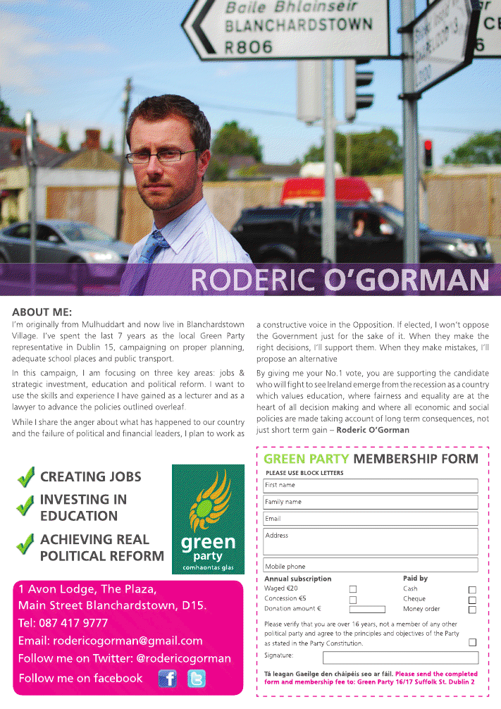 Leaflet from Roderic O’Gorman -Green Party – 2011 Dublin West By-Election » dwrog2