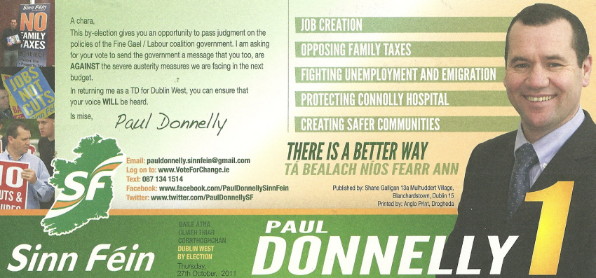 Leaflet from Paul Donnelly -Sinn Fein 2011 Dublin West By Election » pdonnellydw2