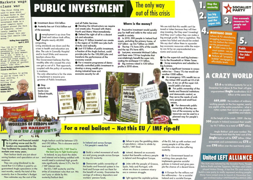 A Leaflet with the headline “Austerity Isn’t Working” from Ruth Coppinger of The Socialist Party / United Left Alliance from the 2011 Dublin West By Election Campaign.