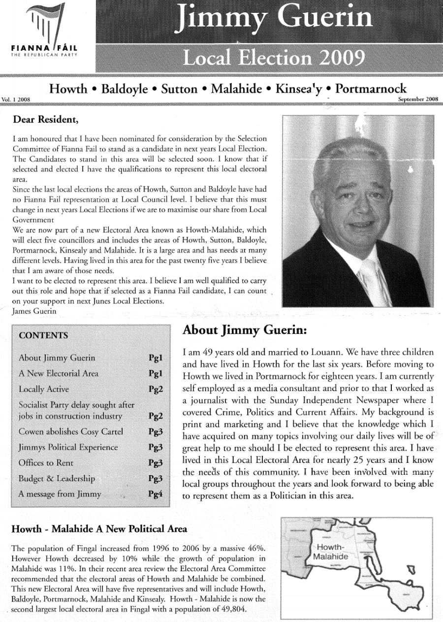 Leaflet from Jimmy Guerin -Fianna Fail (ran as an Indo) -2009 Local Elections Howth/Malahide » jguerin09a