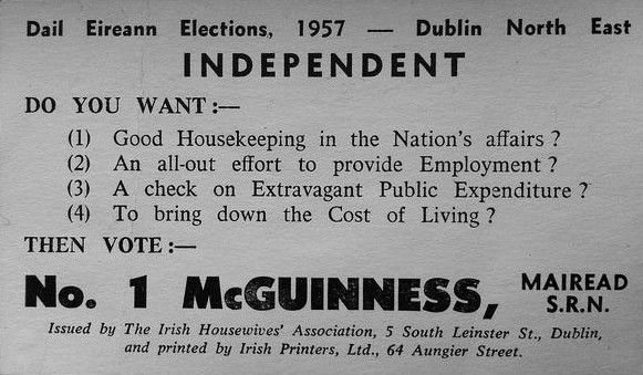 Leaflet from Mairead McGuinness -Irish Housewives Association -1957 Dublin North East » Mcguinness1975iha