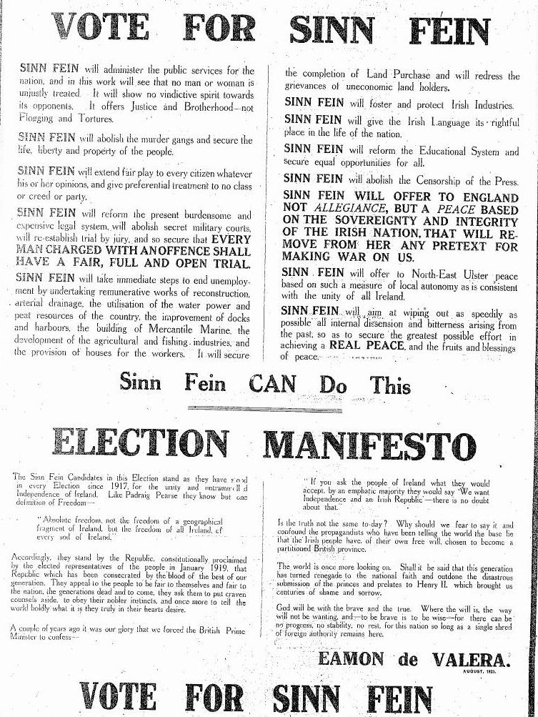 […] Irish Election Literature blog carries a fascinating Sinn Féin general election manifesto from 1923, with an opening paragraph focusing on “Justice and Brotherhood”. What is […]