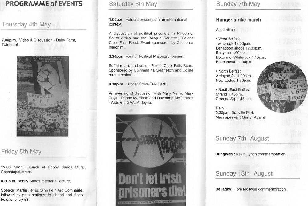 “1981 Hunger Strike -19th Anniversary May 2000” -Leaflet with programme of events. » hblock2000d