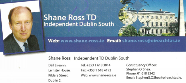 I was informed too that Ross is the only local TD taking an interest in the issue. He is the only opposition TD in Dublin South!