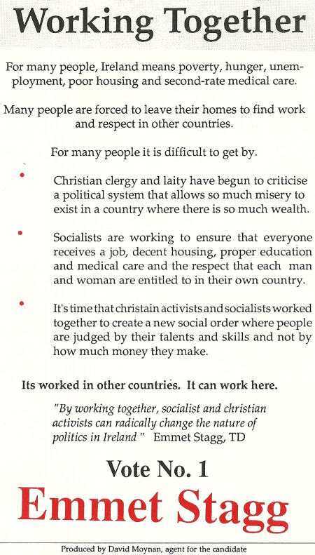 “By working together, socialist and christian activists can radically change the nature of politics in Ireland” -Emmet Stagg Leaflet late 80’s November 26, 2011