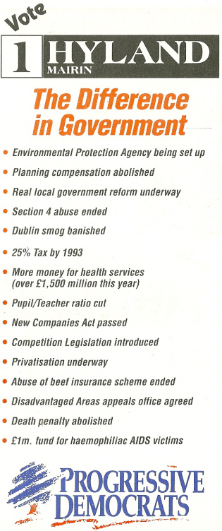 Flyer from Mairin Hyland -Progressive Democrats -1991 Local Elections Celbridge » mhyland91b
