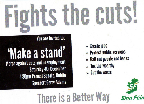 A Sinn Féin leaflet advertising a rally against cuts and unemployment for December 4th 2010.