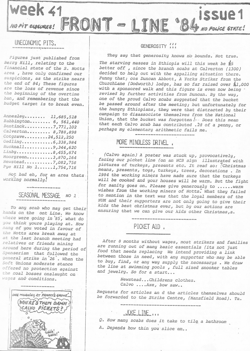 “Front – Line” Issue 1 – A 1984 Newsletter from the Miners Strike in the UK (Nottingham) » frontline1a
