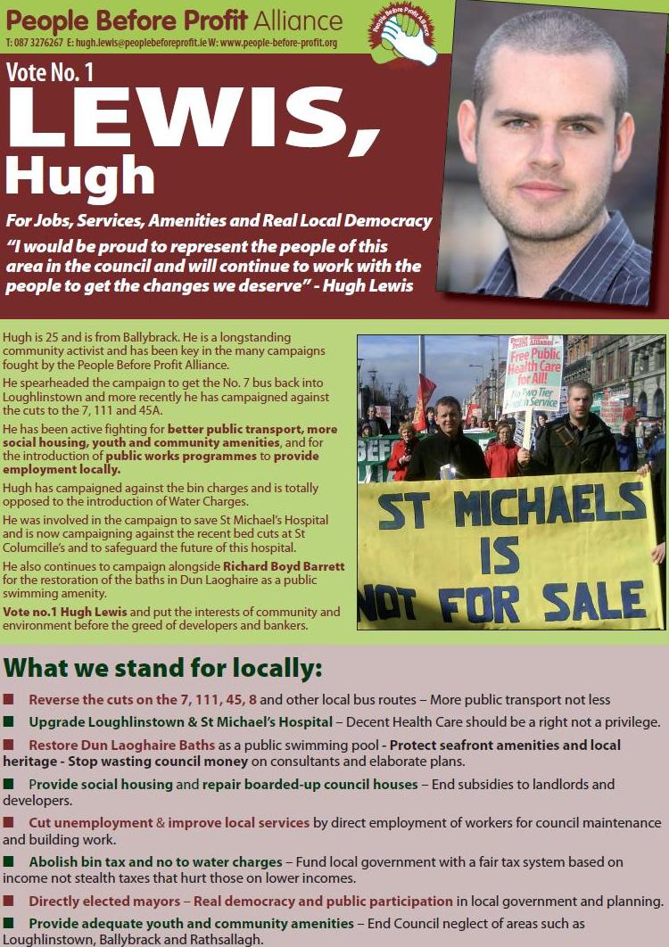 Leaflet from Hugh Lewis -People Before Profit -2009 Local Elections Ballybrack » hlewis09a