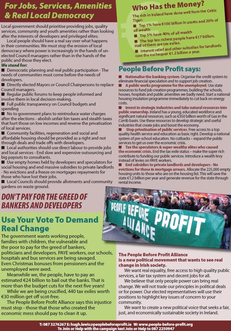 Leaflet from Hugh Lewis -People Before Profit -2009 Local Elections Ballybrack » hlewis09b