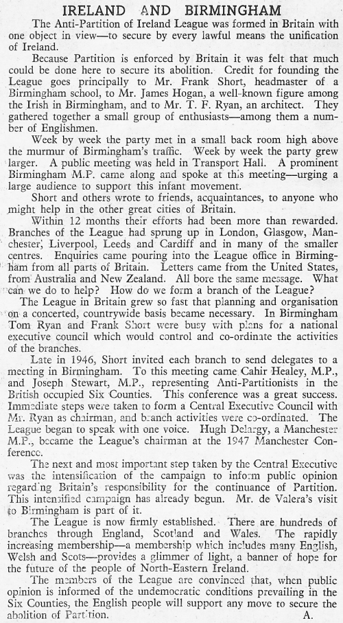 1949 booklet from The Anti Partition of Ireland League for the visit of Eamon De Valera to Birmingham » apldev15