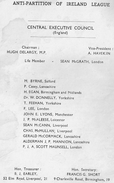 1949 booklet from The Anti Partition of Ireland League for the visit of Eamon De Valera to Birmingham » apldev1a