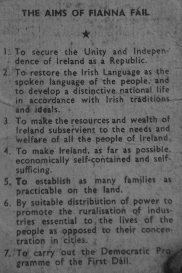 From a 1978 Membership booklet, “The Aims of Fianna Fail”.