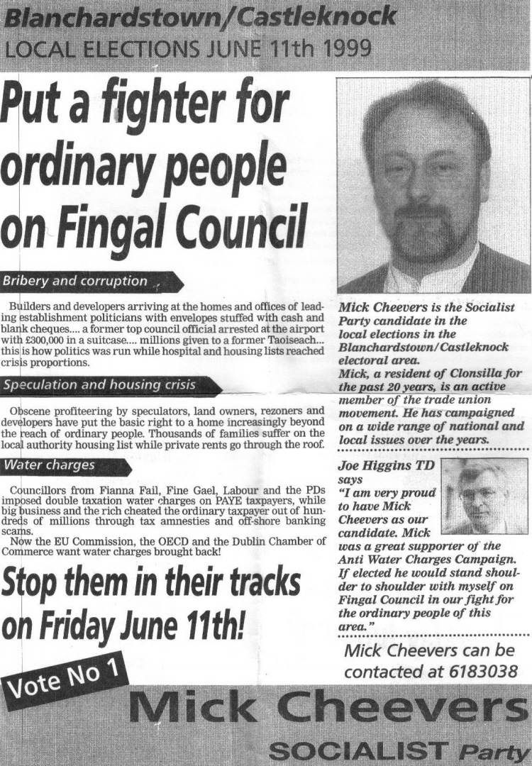 Leaflet from Mick Cheevers -Socialist Party -Castleknock – 1999 Local Elections » blanch99a