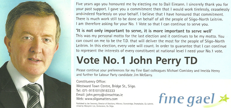 (With Airbrushed Enda) John Perry – Fine Gael -2007 General Election Sligo North Leitrim » jperry07b