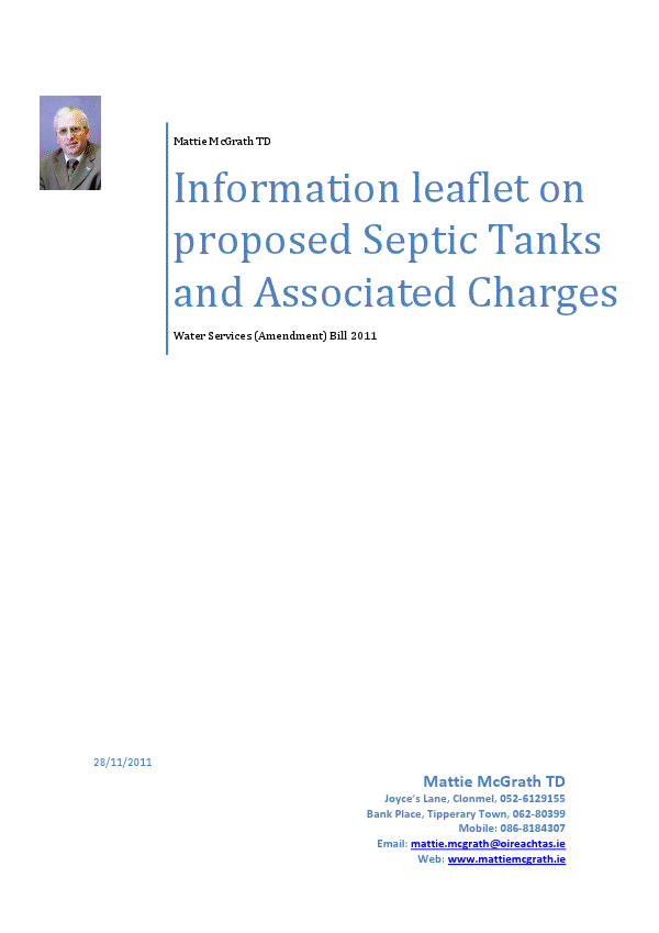 “Information leaflet on proposed Septic Tanks and Associated Charges” from Mattie McGrath -Independent -Tipperary South » septictankmattie1