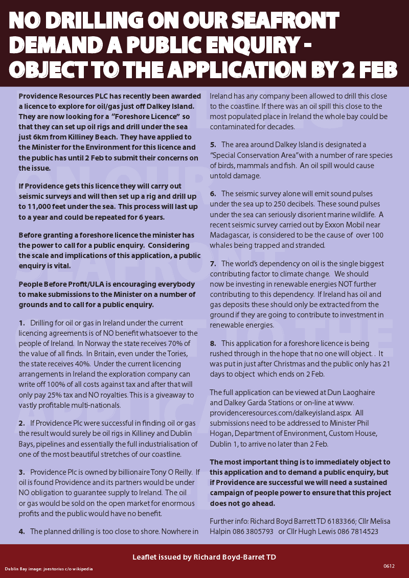 One Response to ““Protect Dublin Bay -No Drilling on Our Seafront” -Leaflet from Richard Boyd Barrett -People Before Profit / United Left Alliance”