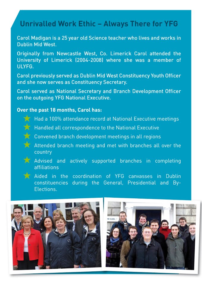 Leaflet for Carol Madigan Young Fine Gael Vice Presidential Election 2012 » cmadiganyfg2