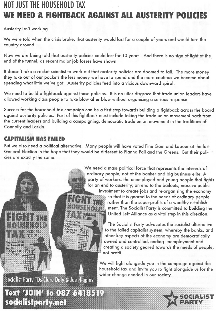 “Household Tax -Time to say No to Austerity Policies!” leaflet from the Socialist Party » householdtax2