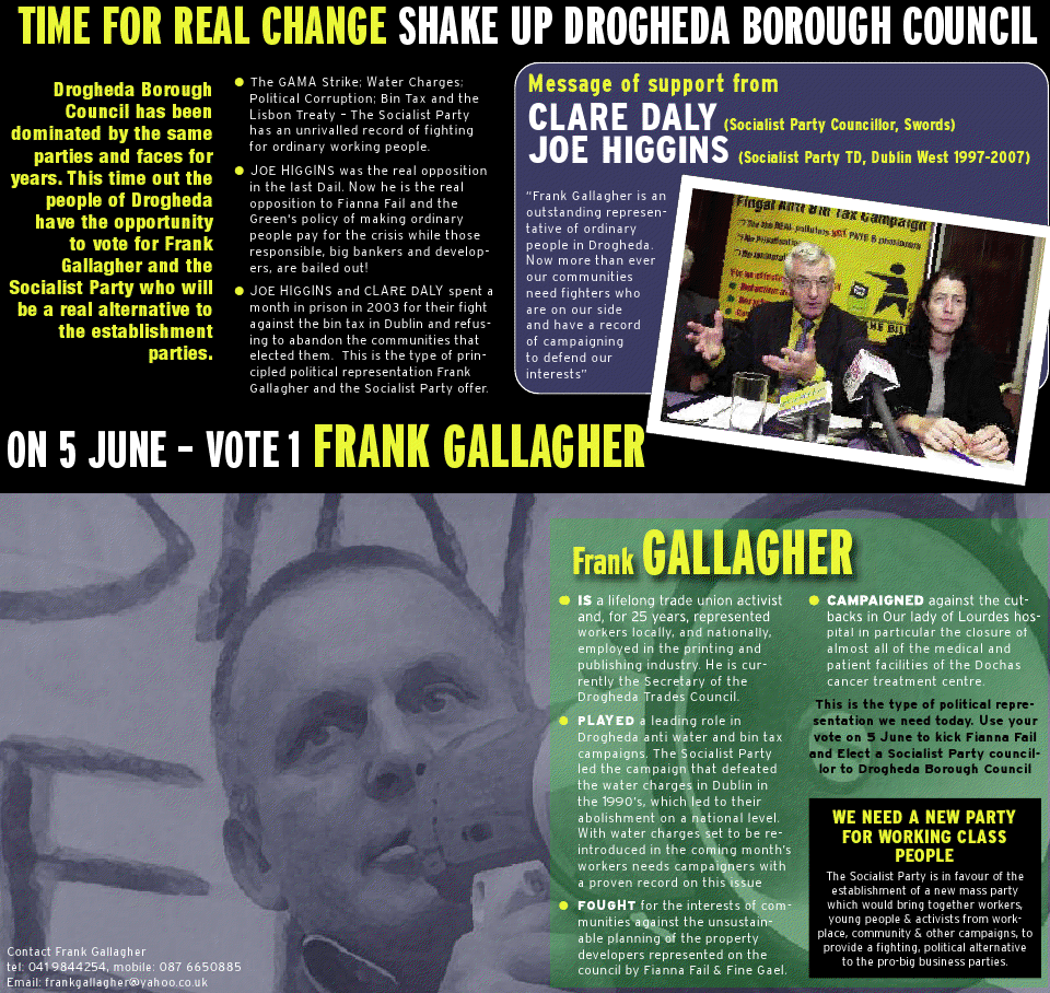 Leaflet from Frank Gallagher- Socialist Party – 2009 Local Elections Drogheda » fgallagher09a2a