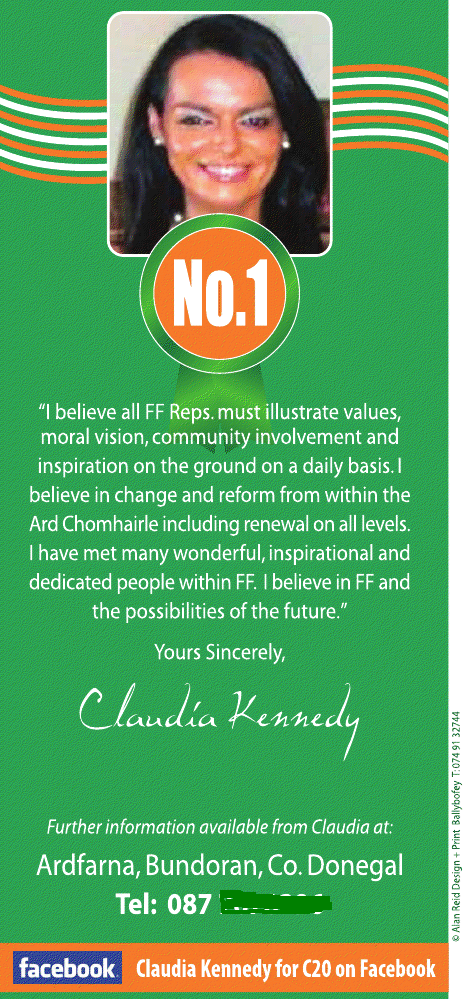 Leaflet from Claudia Kennedy – Fianna Fail Committee of Twenty Elections » ckennedy3