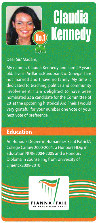 Leaflet from Claudia Kennedy – Fianna Fail Committee of Twenty Elections » ckennedy4