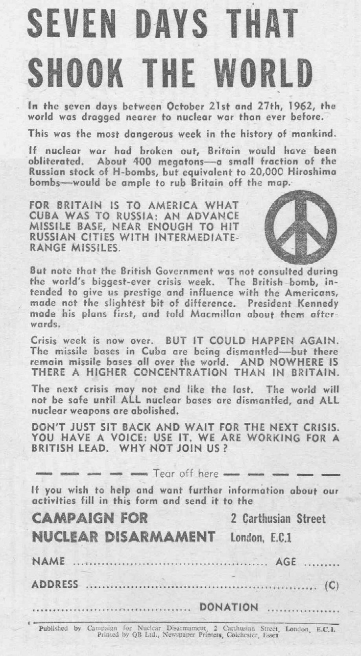 post Cuban Missile Crisis CND Leaflet – “Seven Days That Shook The World” » cnd