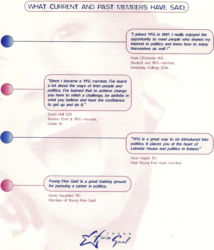 “Benefits Of Membership” Leaflet from Young Fine Gael circa 1998 » yfgbenefits2