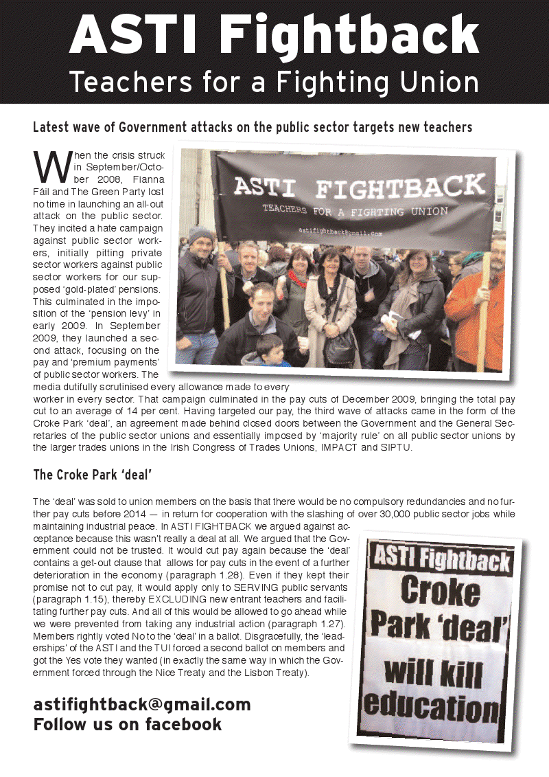 “ASTI Fightback -Teachers for a Fighting Union” leaflet distributed to students. » ASTIFBstudents1