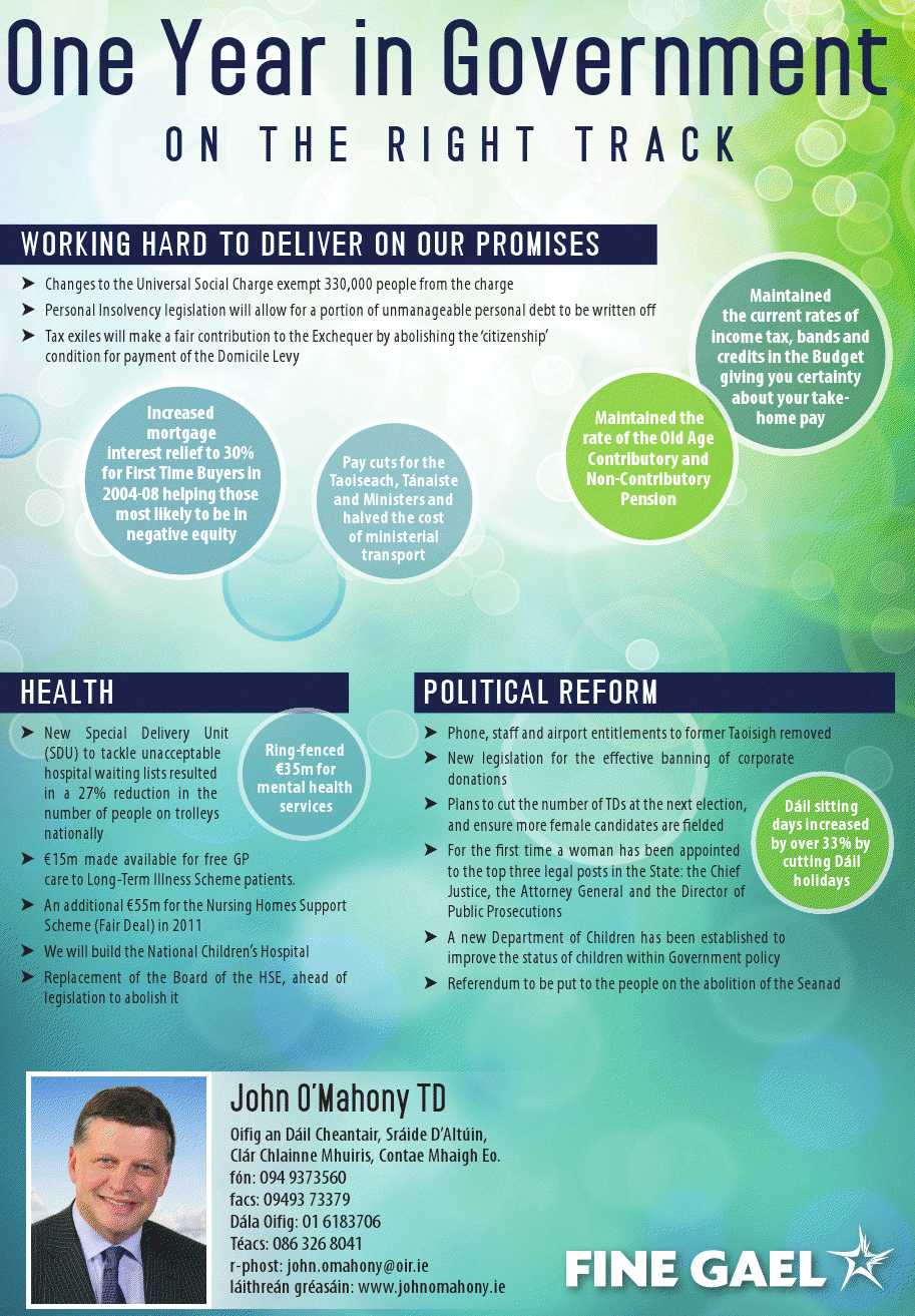 “Fine Gael -One Year in Government On The Right Track” Leaflet from John O’Mahony » 1yearingov2