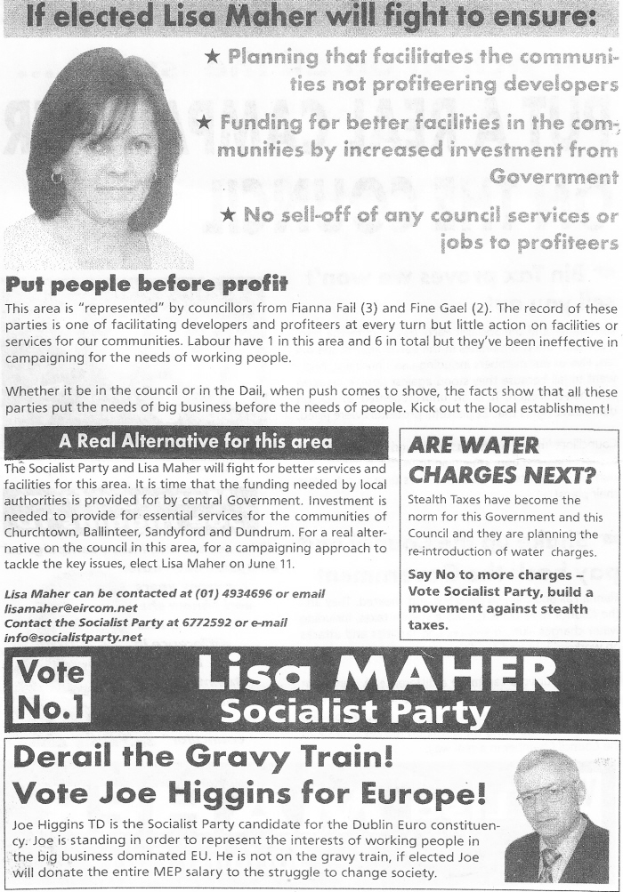 “Put a real campaigner on the Council”-Lisa Maher -Socialist Party 2004 Local Elections Dundrum » lmaher04b