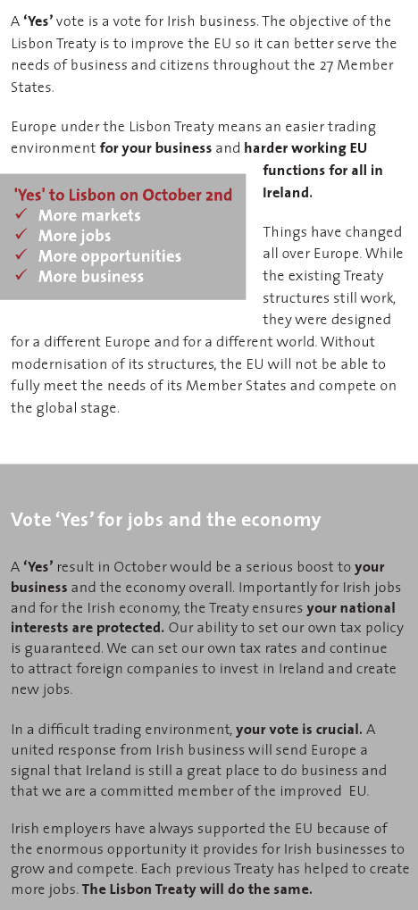 Lisbon 2 leaflet from IBEC “Yes For Jobs ……New Start , New Deal, New Opportunities” » IBECLisbon2