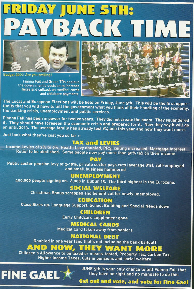 “Friday June 5th: Payback Time” -Fine Gael leaflet from the 2009 Local Elections » payback09a