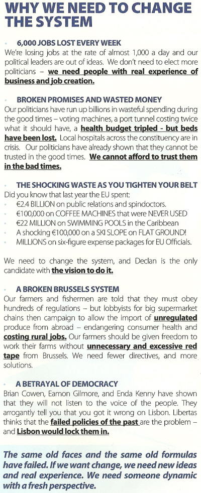 Leaflet from Declan Ganley -Libertas -2009 European Elections -North West » dganely4