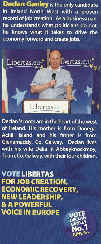 Leaflet from Declan Ganley -Libertas -2009 European Elections -North West » dganely6