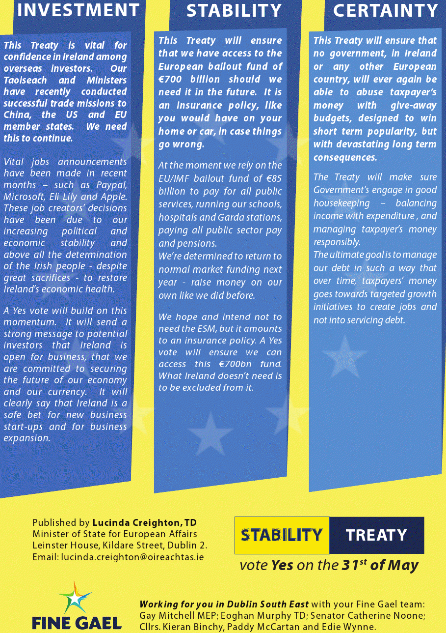 “Stability Treaty -A Yes Vote is a vital step in our recovery” Leaflet from Lucinda Creighton Fine Gael -Dublin South East » lucindaftreaty3